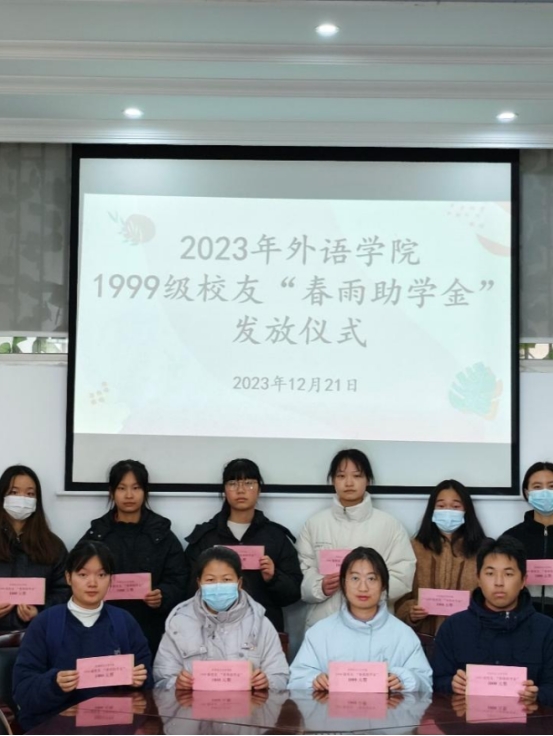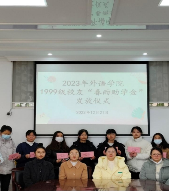 拳拳爱心点燃希望之光,片片真情托起明日朝阳。1999级员工们的爱心之举就像滴滴春雨,润物无声。“春雨助学”活动用大爱和坚守为外院学子掌起了一盏教育明灯,照亮了外院学子前行的道路。希望莘莘学子在求学征途中不忘来时之路,崇德向善,积极进取,在奋斗中创造美好未来,以实际行动回报社会。