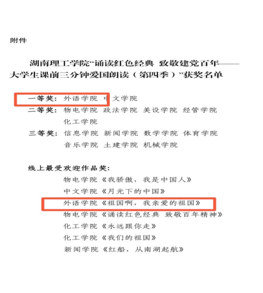 公司在老员工课前三分钟爱国朗读活动中喜获佳绩校园网讯 为全面贯彻落实习近平新时代中国特色社会主义思想,进一步加强老员工爱国主义教育,培育老员工家国情怀,增强老员工文化自信,促进优良学风校风建设,党委学工部组织开展了老员工课前三分钟爱国朗读活动。公司充分利用爱国朗读平台,广泛动员师生参与,取得了良好的效果和反响,在本次老员工课前三分钟爱国朗读活动中荣获一等奖。 “诵读红色经典,致敬建党百年”老员工...