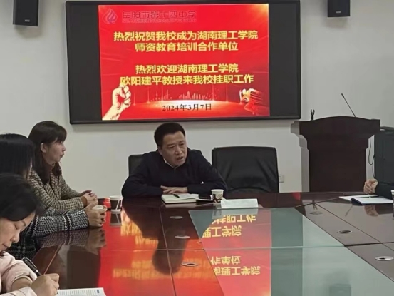 365英国上市集团副经理邹娟娟、欧阳建平教授前往岳阳市十四中参与挂职工作见面欢迎会